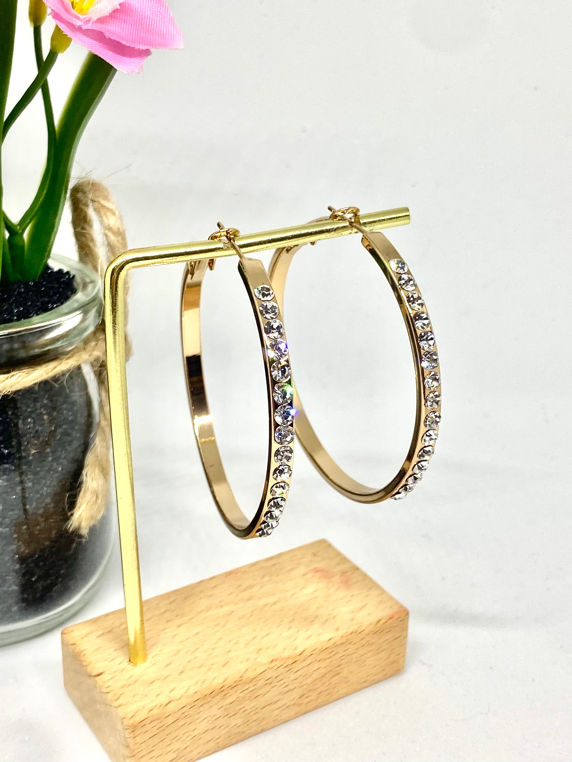 créoles Jazira sont serties de strass . Elles sont belles, brillantes et ajoutent une touche classique à votre look. Invitez de l'éclat à votre tenue et ajoutez de la beauté à vos oreilles grâce à ces créoles uniques.